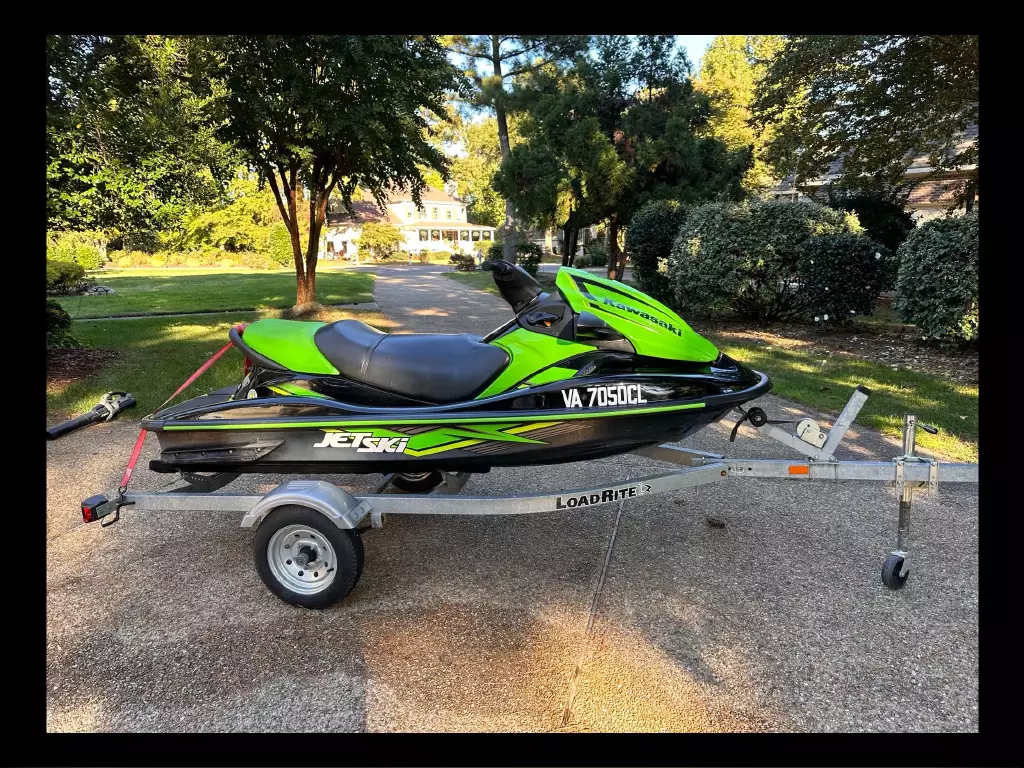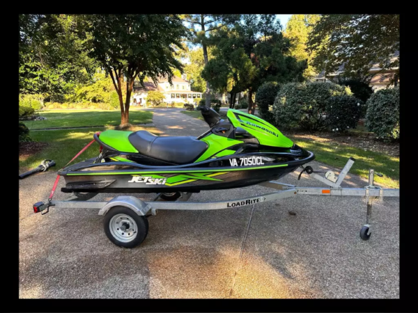 Green Kawasaki STX 15F 160 HP Jet Ski on Load Rite trailer. 2019 with 436 hrs. Get ready for the hot summer months. I just replaced steering and reverse cables, new jet pump, and all new water contact hardware. LoadRite trailer included in great shape. This ski runs like a scalded dog and then some. 60 mph. Clear titles on both VA registered. All meticulously kept. Let’s go for a test ride the waters get too crowded ! $6300 OBO !