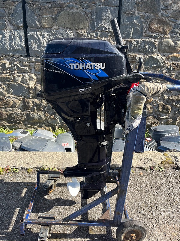 Used 15hp Tohatsu Outboard – fourstroke, Long shaft, manual start, tiller tiller control